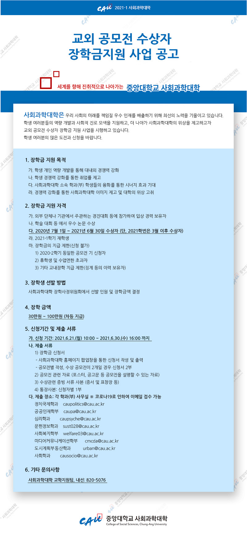 2021-1 교외 공모전 수상자 장학금지원 사업 공고
